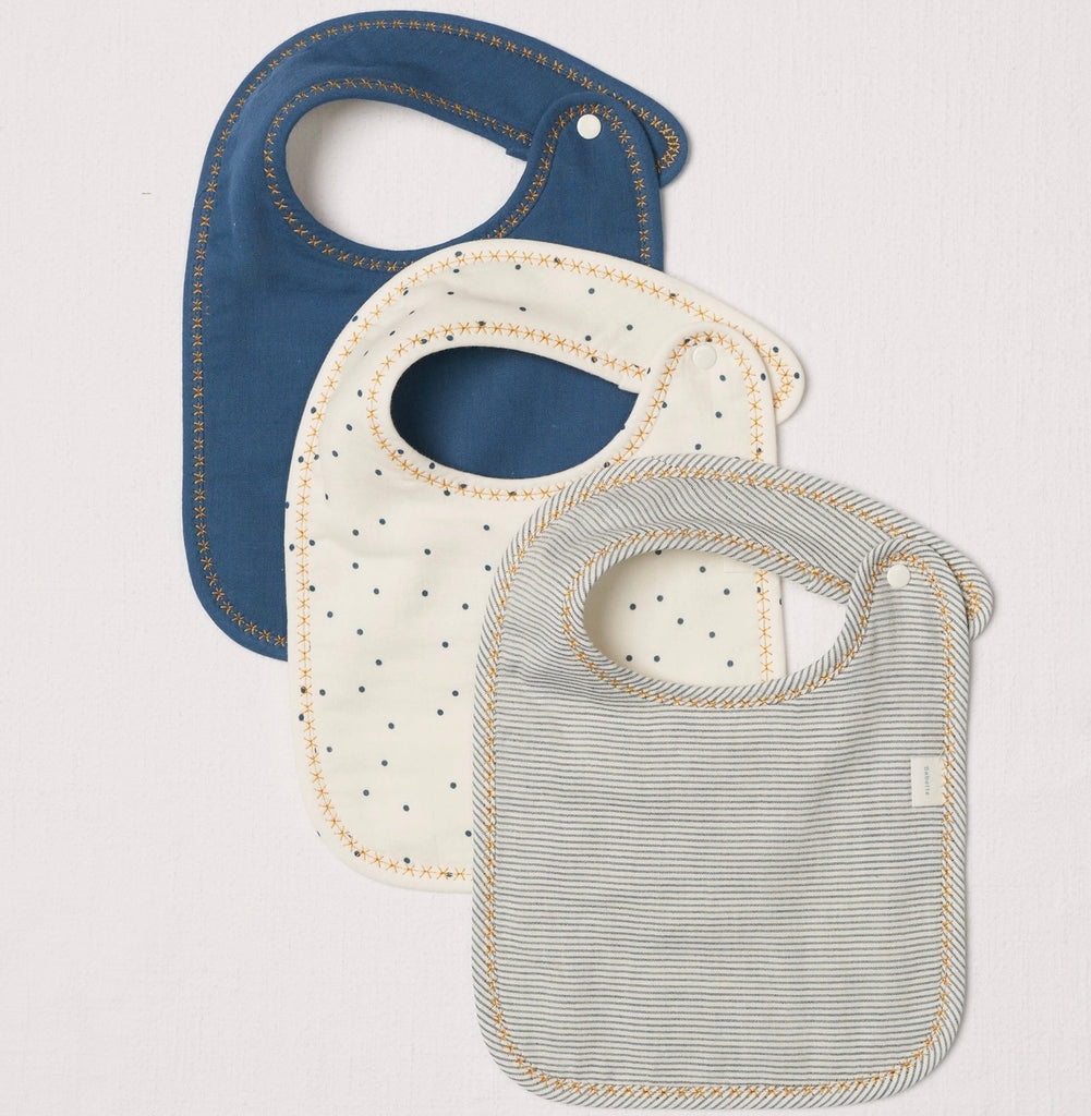 Our new burp cloths are made of the softest cotton and absorbent terry cloth back for easy clean up. They are extra large and include a comfy neck cut out to keep the burp cloth in place.